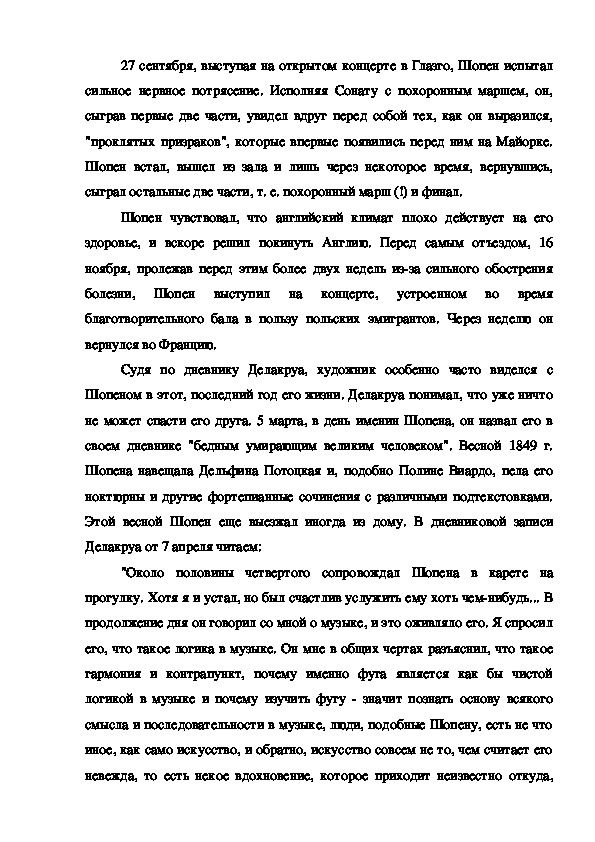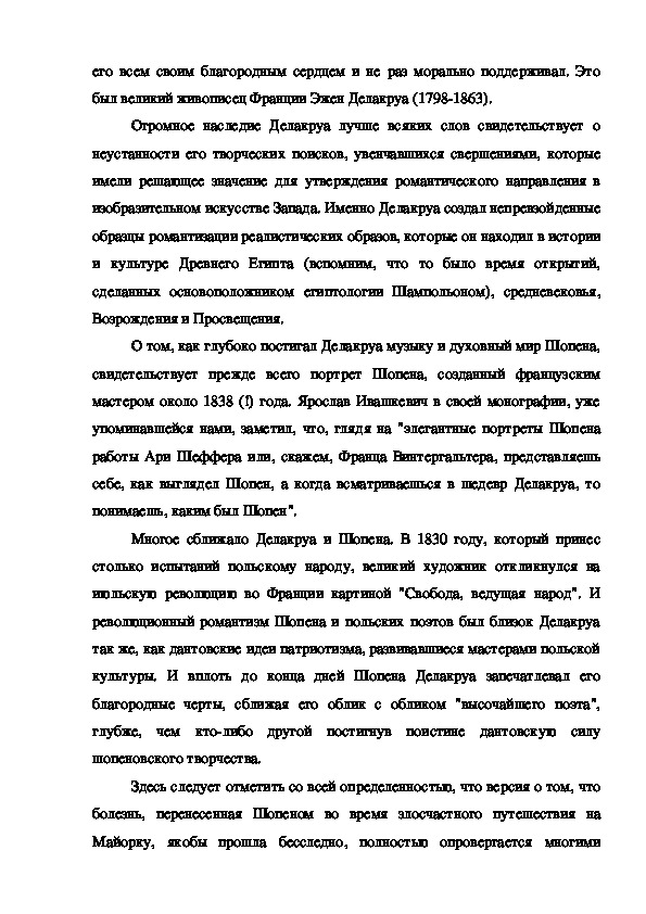 произведение Шопена Эжену Делакруа, тот записал в своем дневнике: