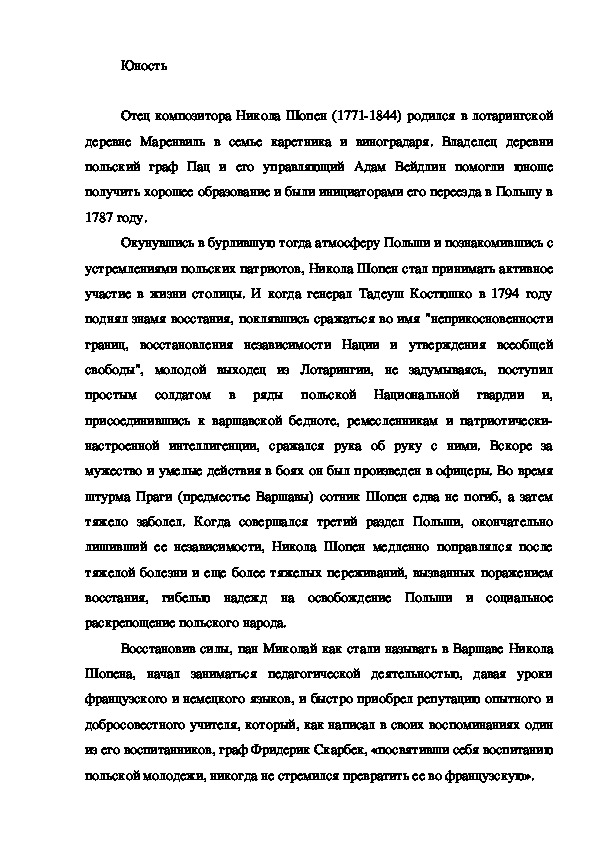 польской молодежи, никогда не стремился превратить ее во французскую».Осенью 1802 года Миколай Шопен принял приглашение графини