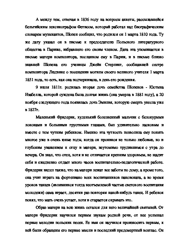 словарем музыкантов, Шопен сообщил, что родился он 1 марта 1810 года. Ту