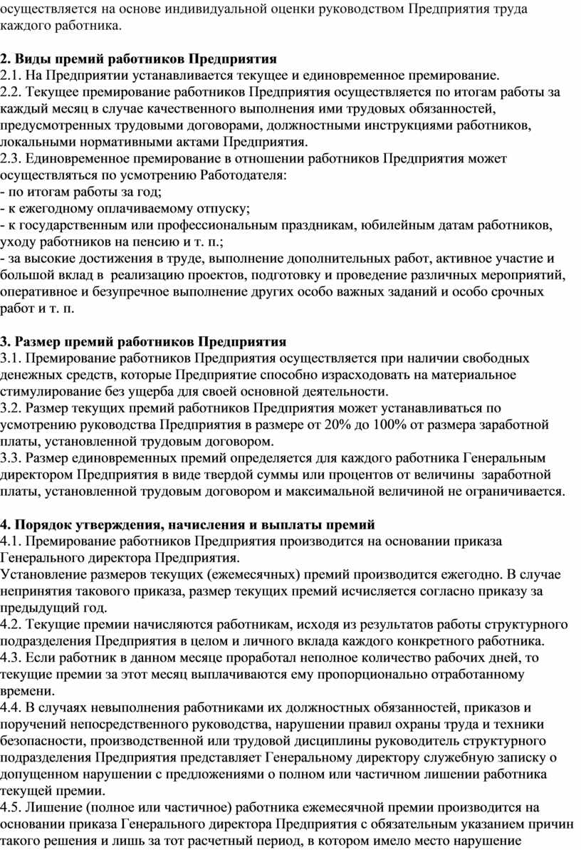 3.2. Размер текущих премий работников Предприятия может устанавливаться по