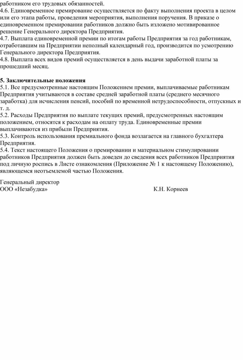 5.4. Текст настоящего Положения о премировании и материальном стимулировании