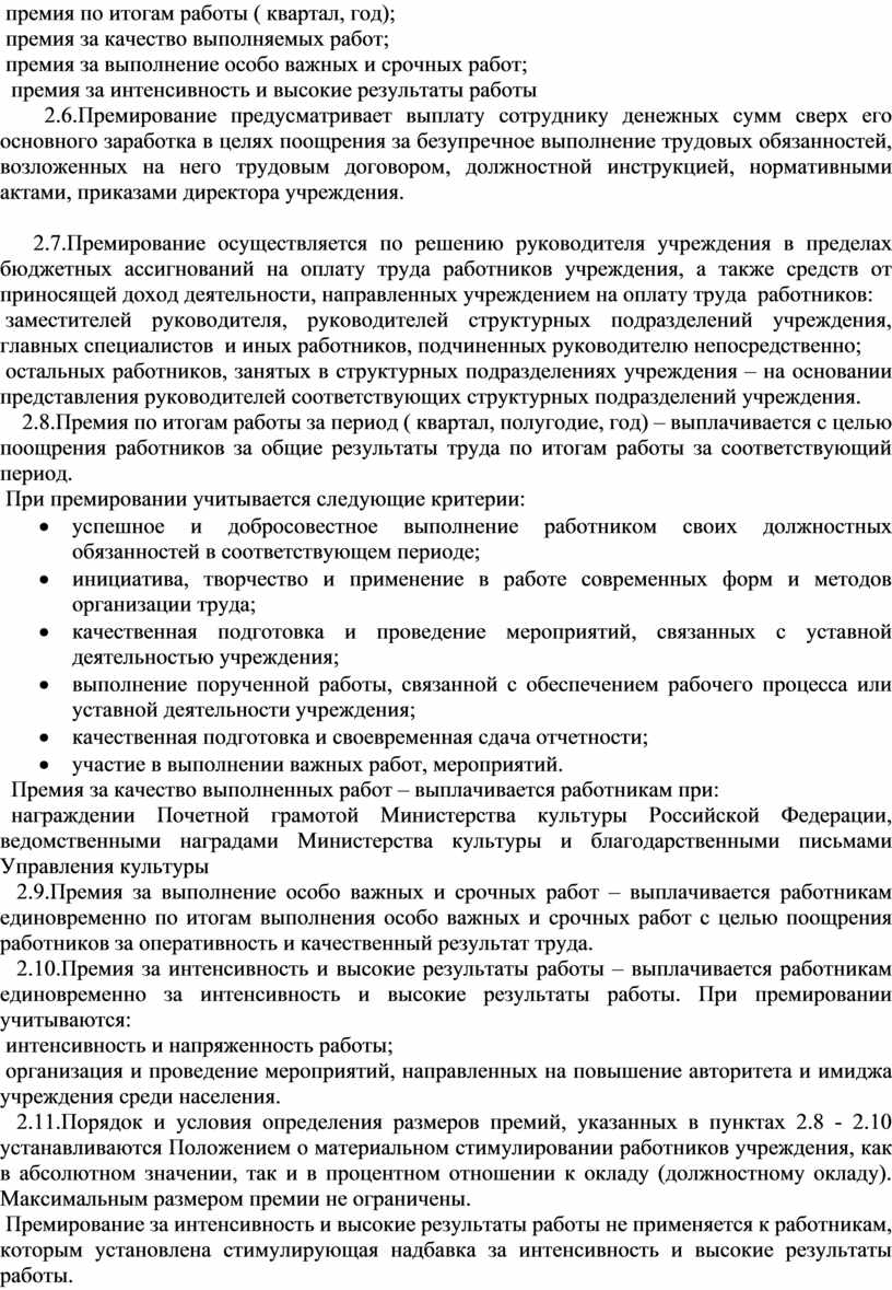 2.2. Текущее премирование работников Предприятия осуществляется по итогам