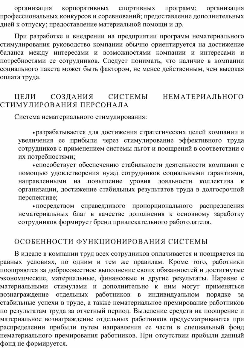 ЦЕЛИ СОЗДАНИЯ СИСТЕМЫ НЕМАТЕРИАЛЬНОГО СТИМУЛИРОВАНИЯ ПЕРСОНАЛА