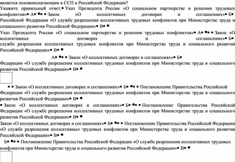 Какой правовой акт является основополагающим в ССП в Российской Федерации? Укажите правильный ответ. |