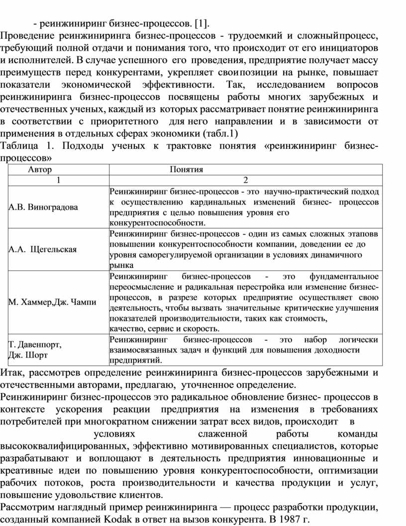 Таблица 1. Подходы ученых к трактовке понятия «реинжиниринг бизнес- процессов»