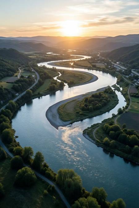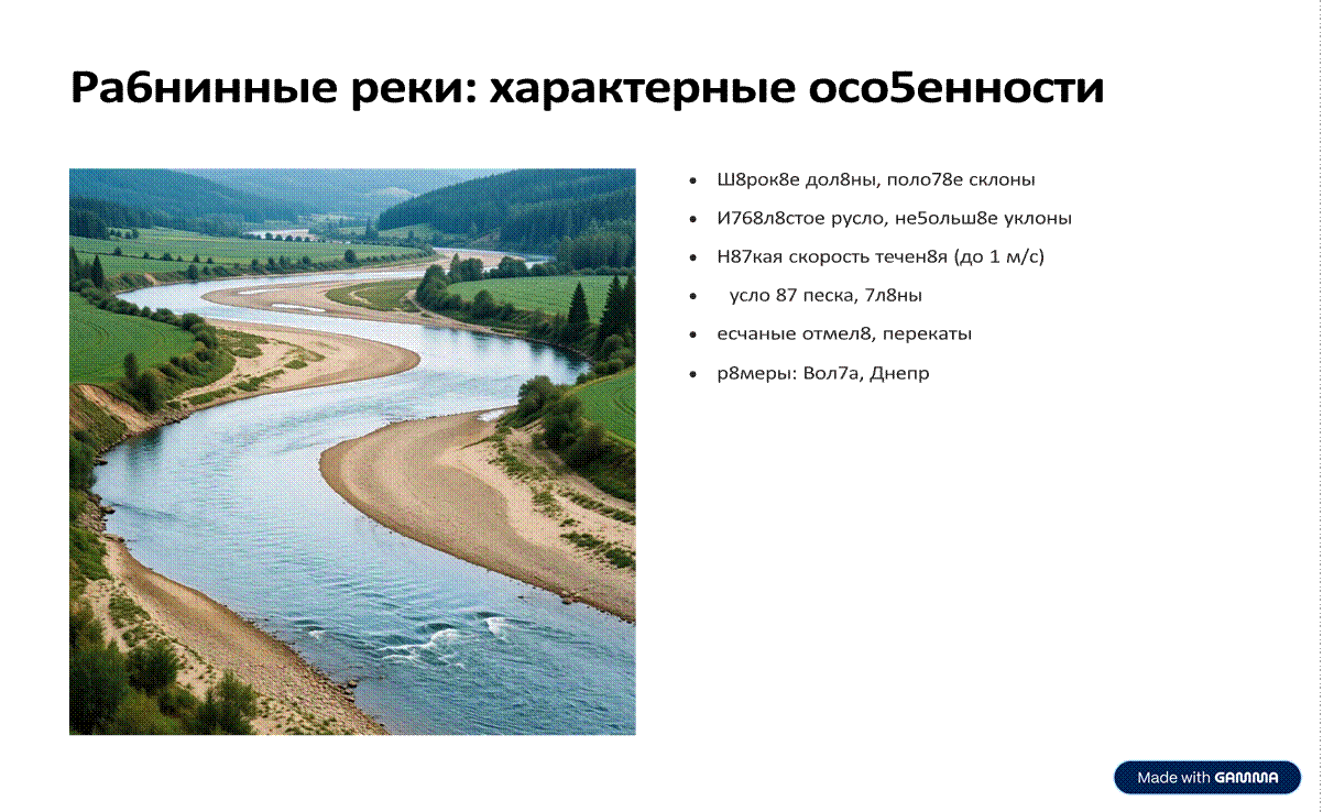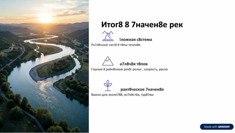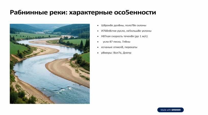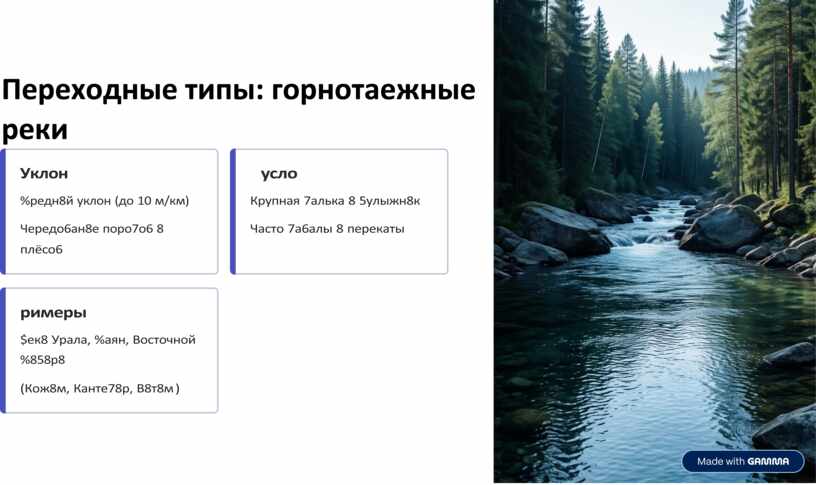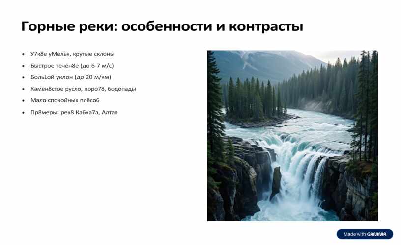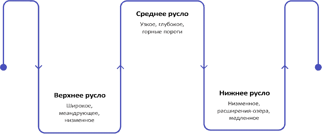 Демонстрирует, как одна река может сочетать различные типы течения на своем пути.