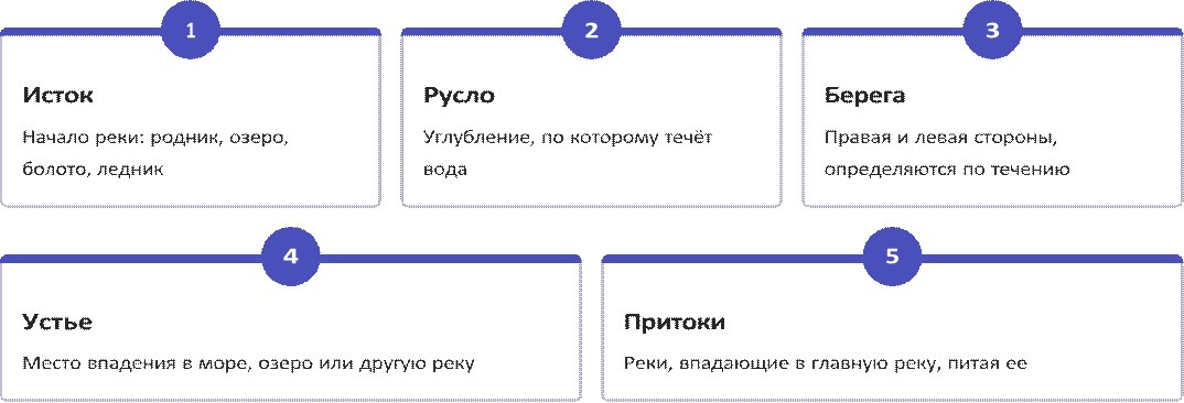рек8 с о5о7начен8ем 8стока, русла, 5ере7о6, устья 8 пр8токо6