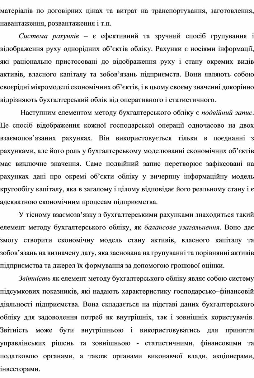 Метод бухгалтерського обліку дає змогу відображувати рух і стан економічних об’єктів, які складають його предмет. Рисою, що відрізняє бухгалтерський облік від інших видів господарського обліку, є послідовна системність їх відображення.