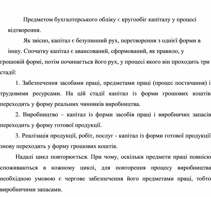 Предметом бухгалтерського обліку є кругообіг капіталу у процесі