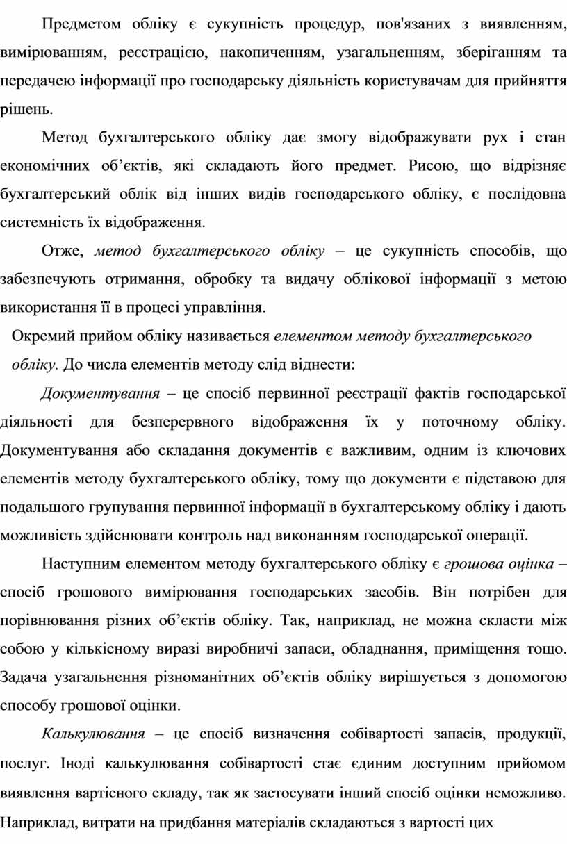 Тема 1. Предмет і метод бухгалтерського обліку. Класифікація обліку