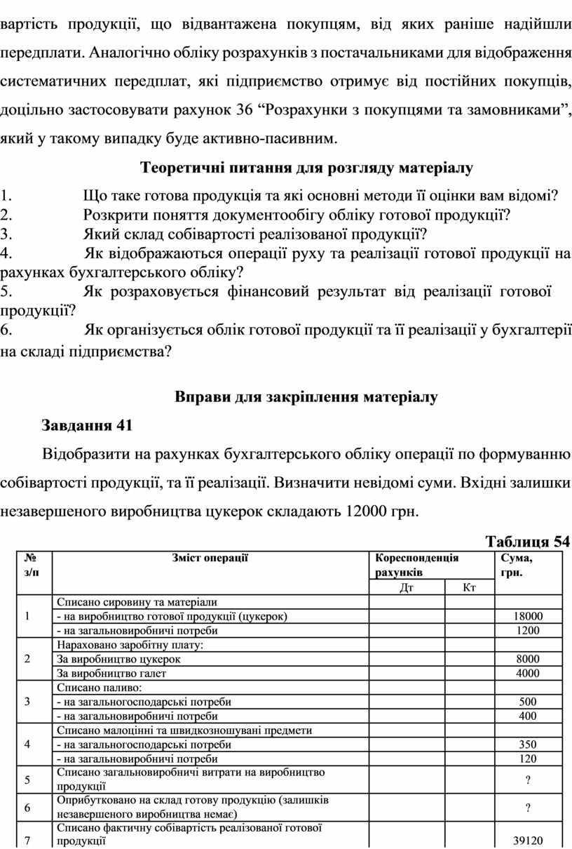 Відобразити на рахунках бухгалтерського обліку операції по формуванню собівартості продукції, та її реалізації. Визначити невідомі суми. Вхідні залишки незавершеного виробництва цукерок складають 12000 грн.