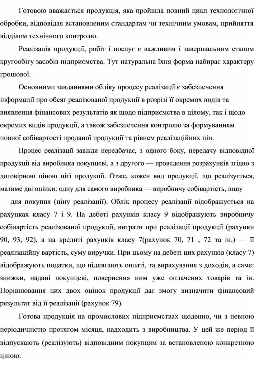 Реалізація продукції, робіт і послуг є важливим і завершальним етапом кругообігу засобів підприємства. Тут натуральна їхня форма набирає характеру грошової.