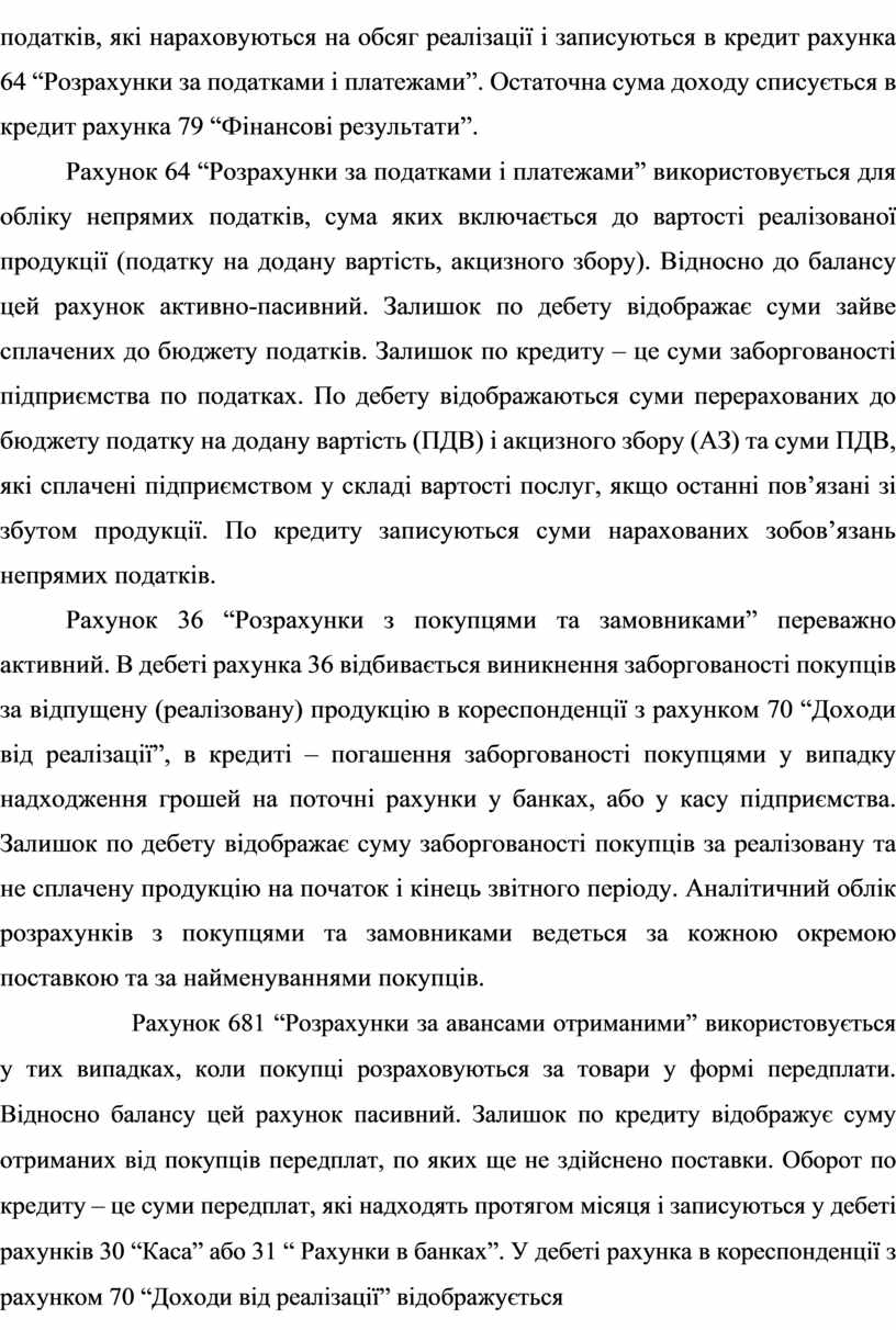 податків, які нараховуються на обсяг реалізації і записуються в кредит рахунка 64 “Розрахунки за податками і платежами”. Остаточна сума доходу списується в кредит рахунка 79 “Фінансові результати”.