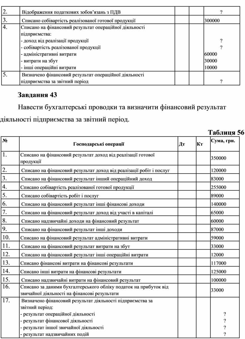 Навести бухгалтерські проводки та визначити фінансовий результат діяльності підприємства за звітний період.