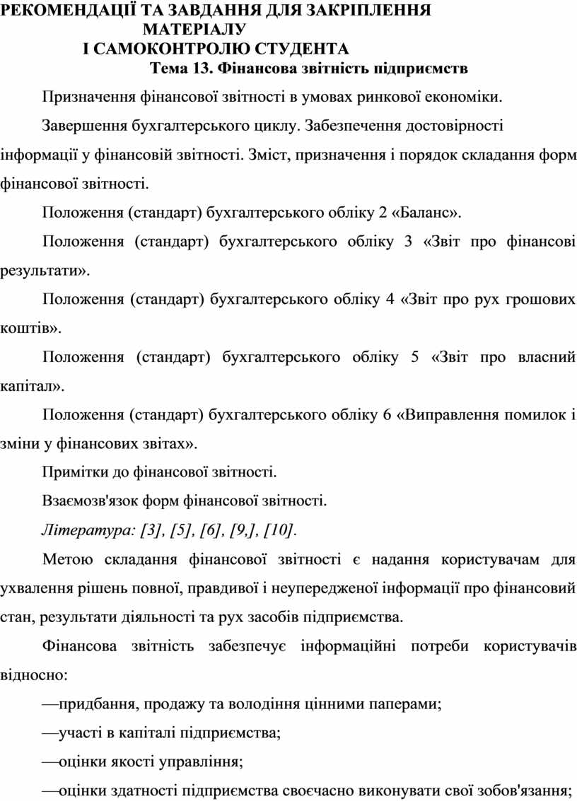 Призначення фінансової звітності в умовах ринкової економіки. Завершення бухгалтерського циклу. Забезпечення достовірності