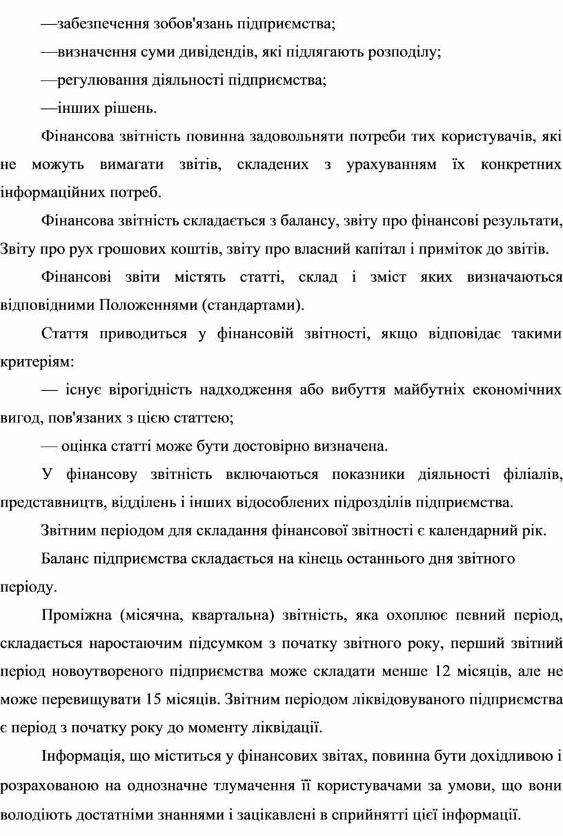Звітним періодом для складання фінансової звітності є календарний рік. Баланс підприємства складається на кінець останнього дня звітного