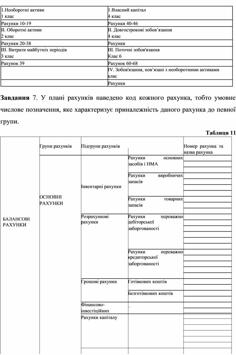 Завдання 7. У плані рахунків наведено код кожного рахунка, тобто умовне числове позначення, яке характеризує приналежність даного рахунка до певної групи.