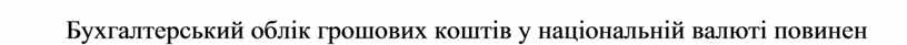 Бухгалтерський облік грошових коштів у національній валюті повинен