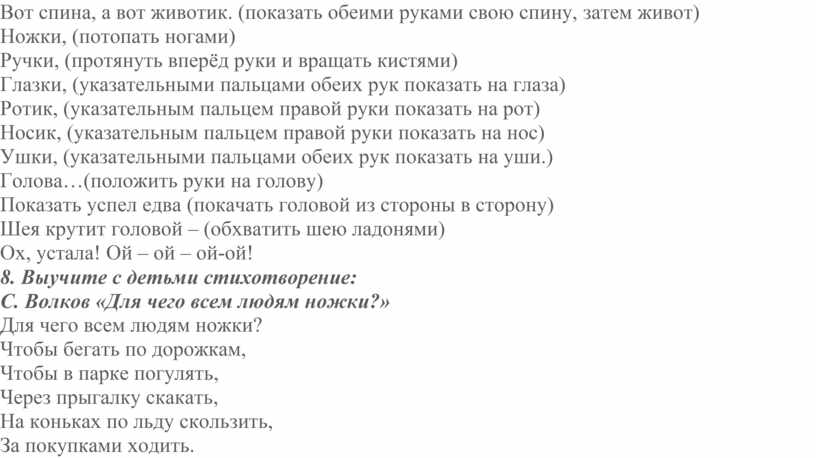 Рекомендации для родителей по теме «Моё тело»