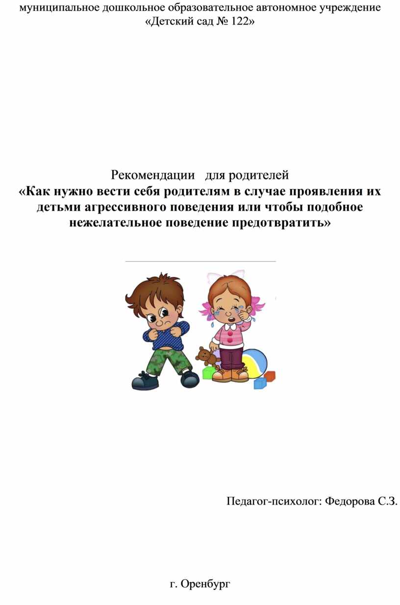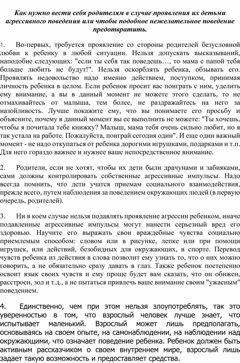 «Как нужно вести себя родителям в случае проявления их детьми агрессивного поведения или чтобы подобное нежелательное поведение предотвратить»