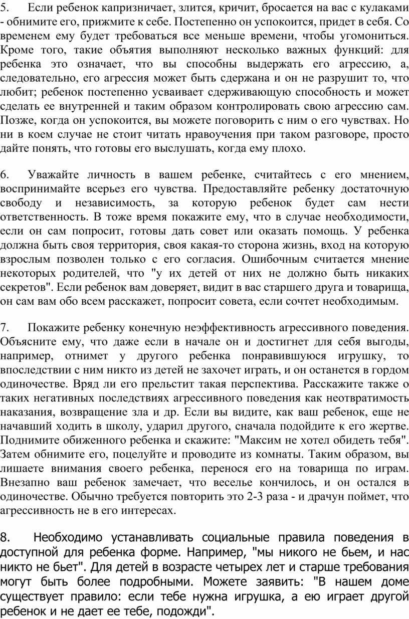 Как нужно вести себя родителям в случае проявления их детьми агрессивного поведения или чтобы подобное нежелательное поведение предотвратить.