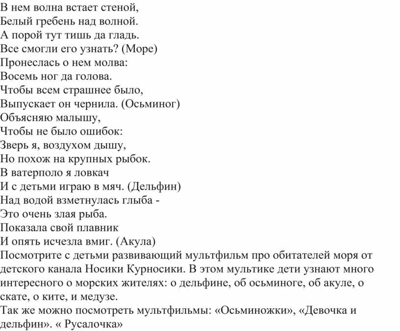 Посмотрите с детьми развивающий мультфильм про обитателей моря от