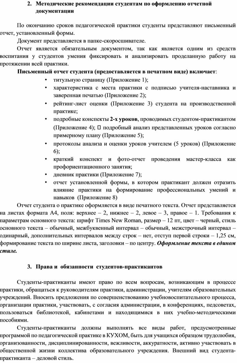 2. Методические рекомендации студентам по оформлению отчетной документации
