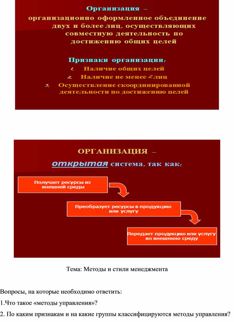 Тема: Методы и стили менеджмента
