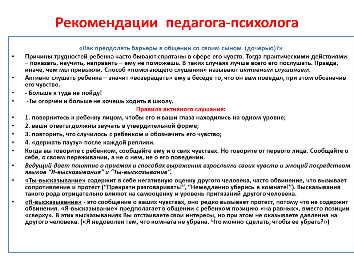 Рекомендации педагога-психолога