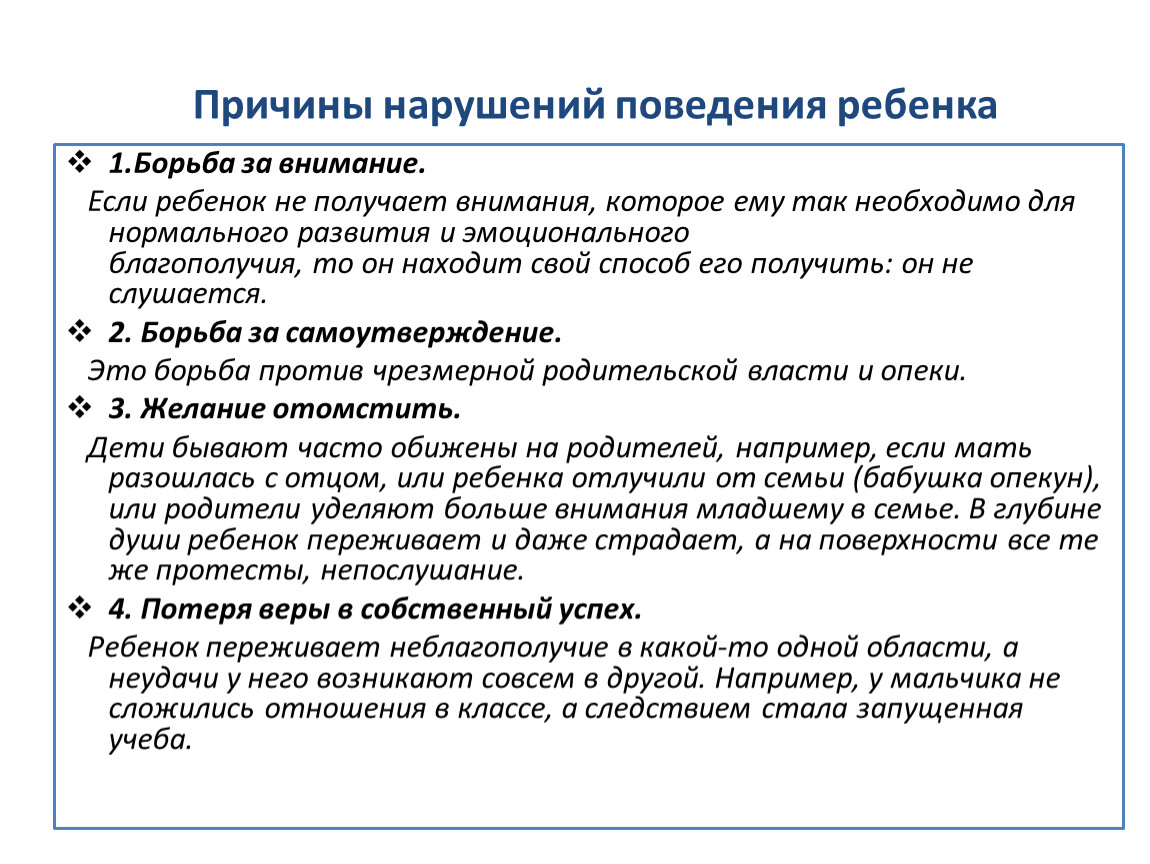 Причины нарушений поведения ребенка