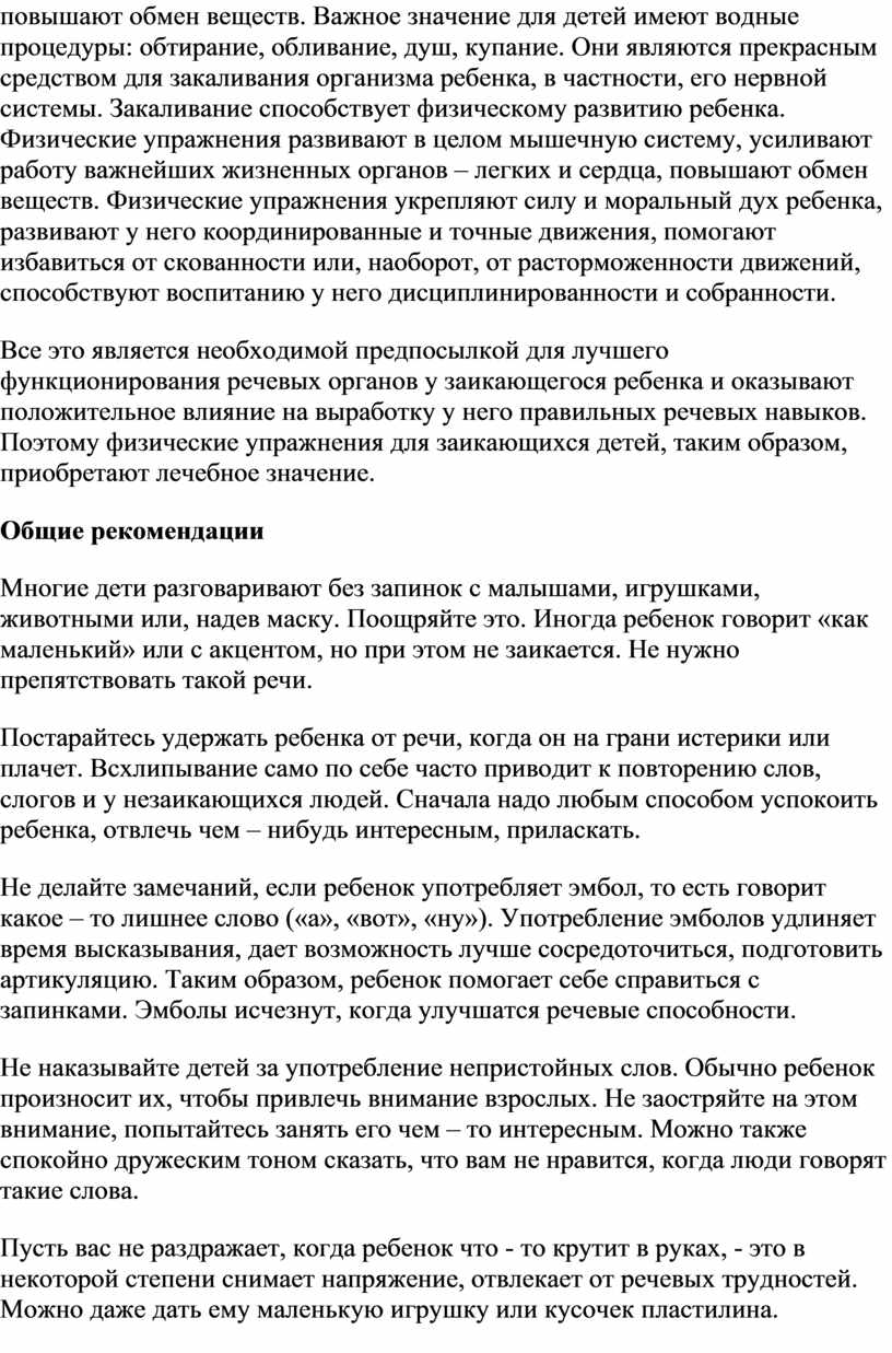 Все это является необходимой предпосылкой для лучшего функционирования речевых органов у заикающегося ребенка и оказывают положительное влияние на выработку у него правильных речевых навыков. Поэтому физические упражнения для заикающихся детей, таким образом, приобретают лечебное значение.