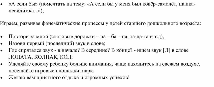 Играем, развивая фонематические процессы у детей старшего дошкольного возраста: