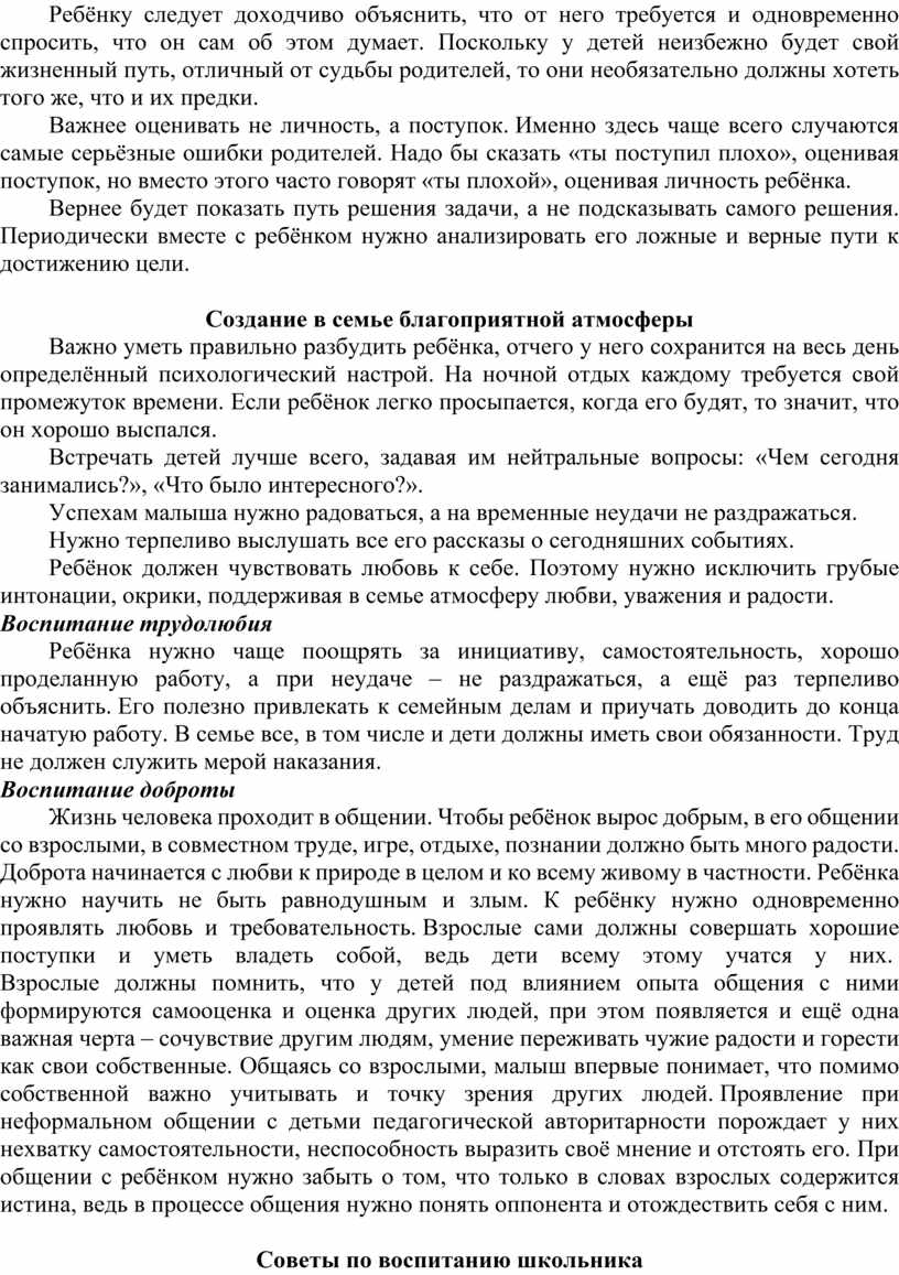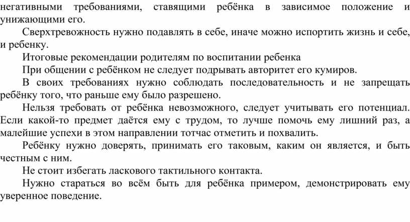 В свете сказанного выше следующие советы родителям по воспитанию детей должны оказаться полезными: