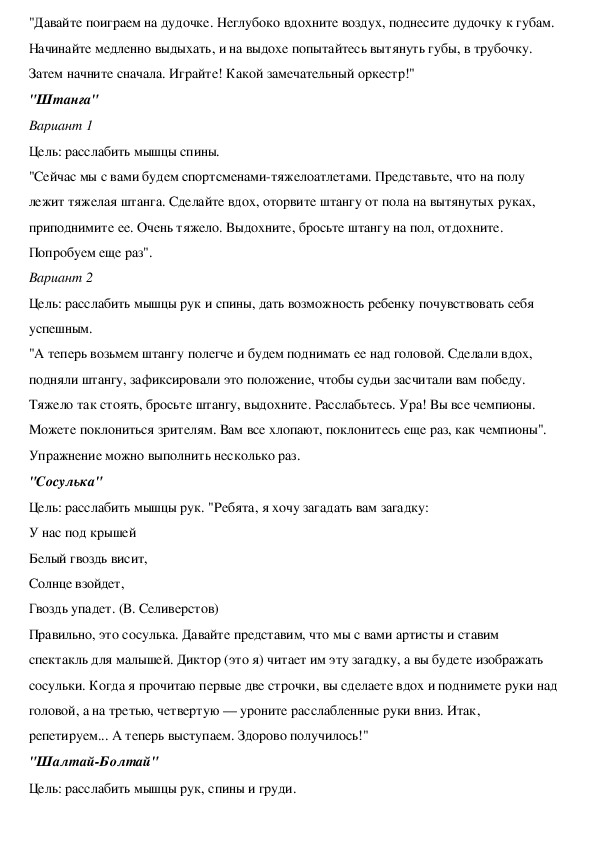 Работа по обучению детей приемам релаксации должна сочетаться с работой по