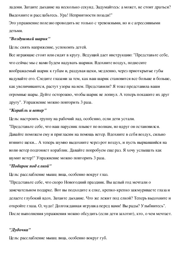 спокойствия. Опыт показывает, что эти упражнения эффективны и понятны детям.