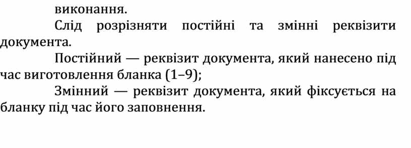 Постійний — реквізит документа, який нанесено під час виготовлення бланка (1–9);