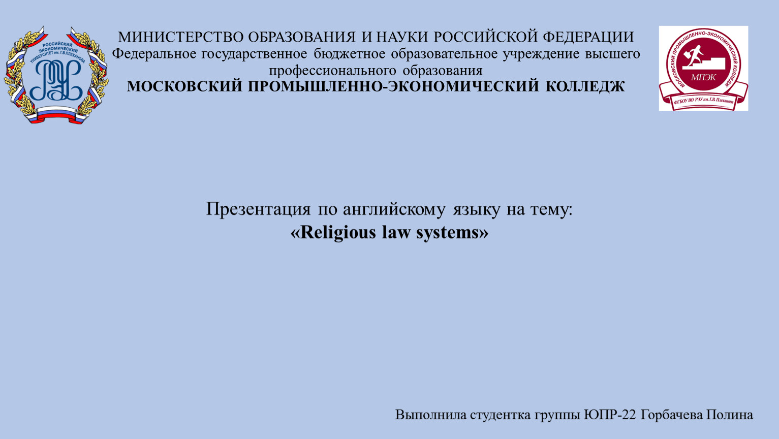 Выполнила студентка группы ЮПР-22 Горбачева Полина