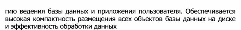 гию ведения базы данных и приложения пользователя. Обеспечивается высокая компактность размещения всех объектов базы данных на диске и эффективность обработки данных