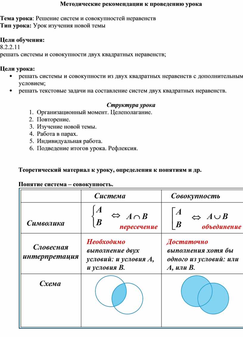 Тема урока: Решение систем и совокупностей неравенств
