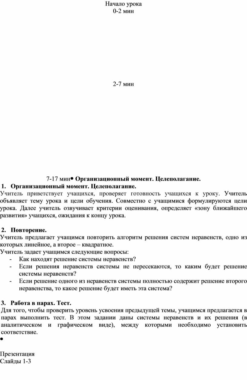 Начало урока 0-2 мин