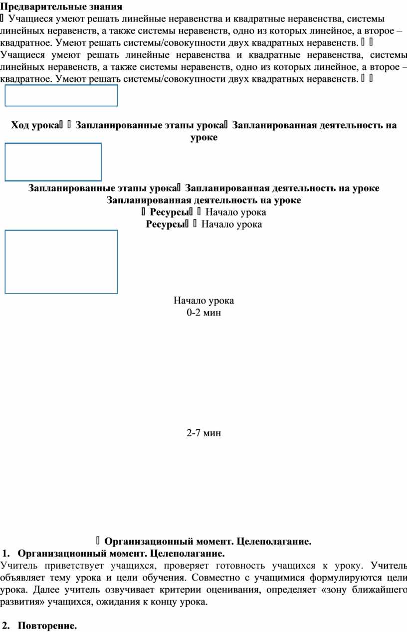 1. Организационный момент. Целеполагание. Учитель приветствует учащихся, проверяет готовность учащихся к уроку. Учитель объявляет тему урока и цели обучения. Совместно с учащимися формулируются цели урока. Далее учитель озвучивает критерии оценивания, определяет «зону ближайшего развития» учащихся, ожидания к концу урока.