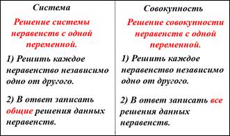Учитель отмечает, что первое неравенство приводит к совокупности, второе – к системе.