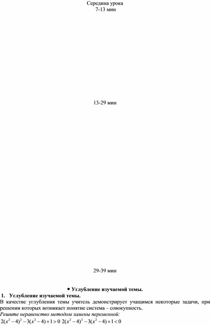 4. Углубление изучаемой темы. В качестве углубления темы учитель демонстрирует учащимся некоторые задачи, при решении которых возникает понятие система – совокупность. Решите неравенство методом замены переменной: