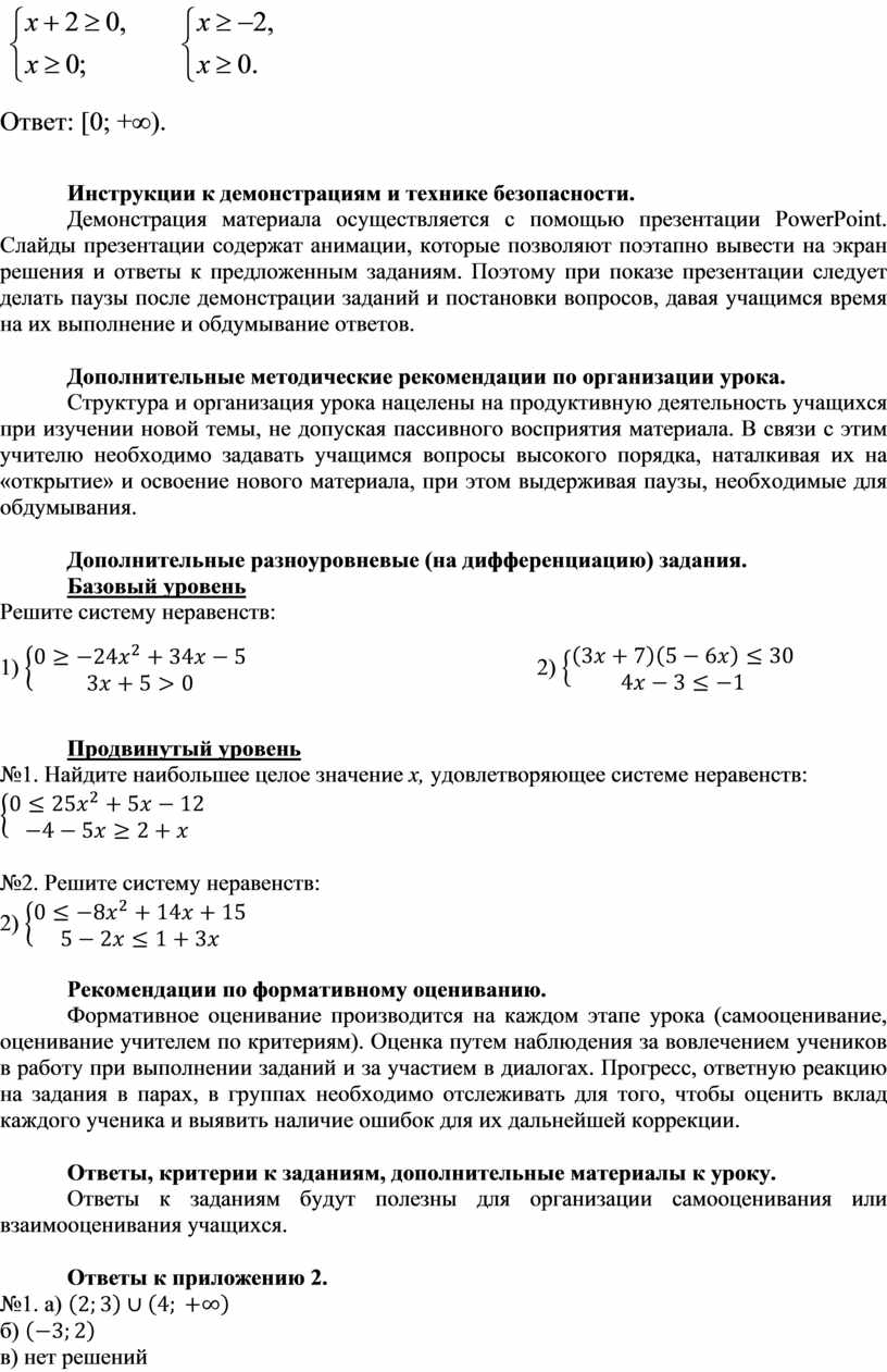 4. Решение систем неравенств, одно из которых линейное, а второе – квадратное.
