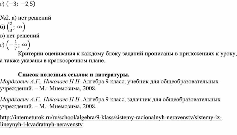 Мордкович А.Г., Николаев Н.П. Алгебра 9 класс, задачник для общеобразовательных учреждений. – М.: Мнемозима, 2008.