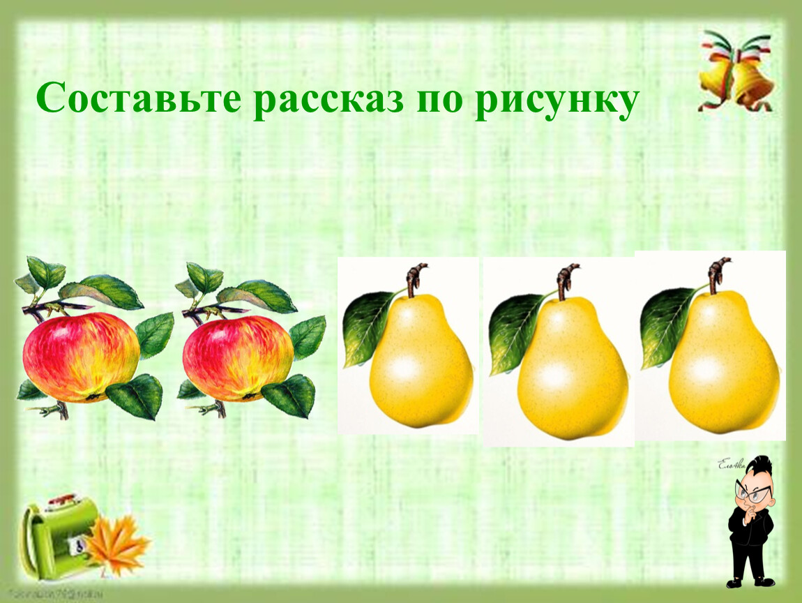 4.«На сколько яблок больше, чем груш?»