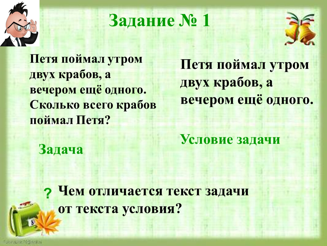 Чем отличается текст задачи