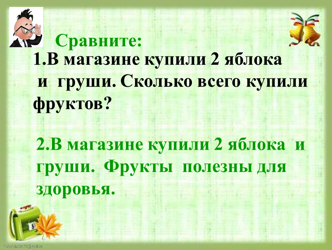 1.В магазине купили 2 яблока