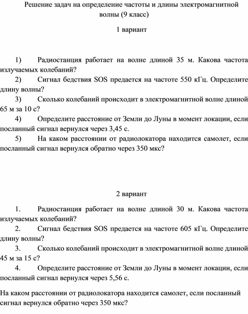 Решение задач на определение частоты и длины электромагнитной волны (9 класс)