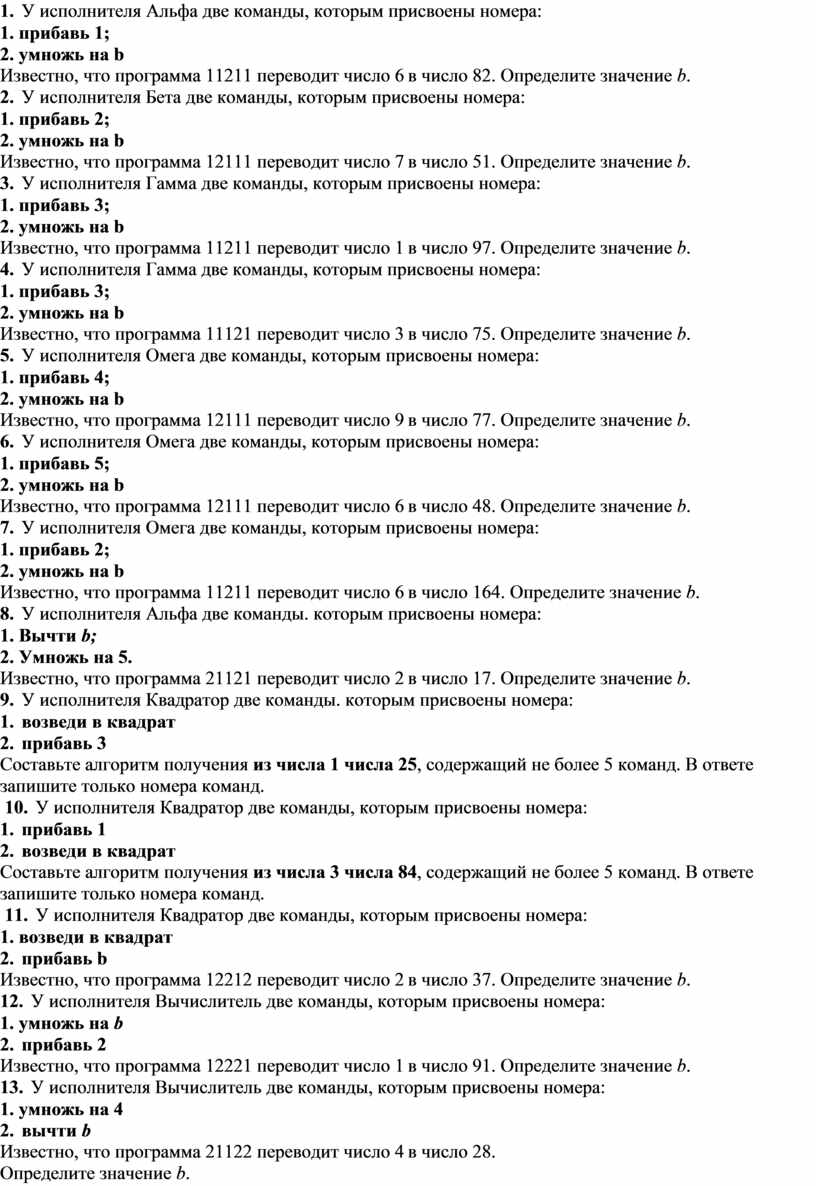 13. У исполнителя Вычислитель две команды, которым присвоены номера: